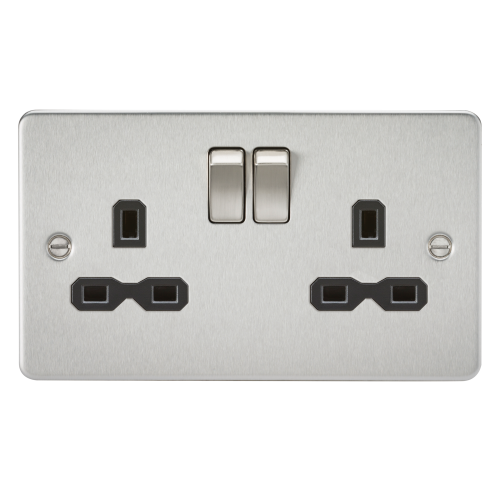 Knightsbridge Flat Plate Brushed Chrome 13A 2G DP Switched Socket with Twin Earths with Insert