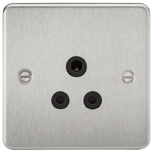 Knightsbridge Flat Plate Brushed Chrome 5A Unswitched Socket Black Insert