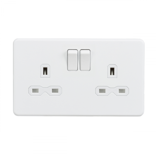 Knightsbridge Matt White 13A 2G DP Switched Socket with Twin Earths with Insert