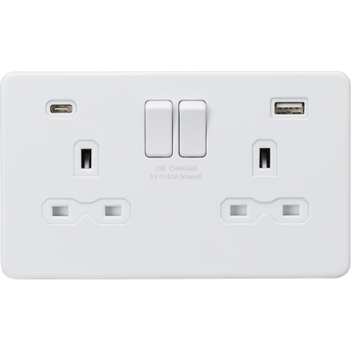 Knightsbridge Matt White 13A 2G SP Switched Socket with Dual USB A+C (5V DC 4.0A shared) with Insert