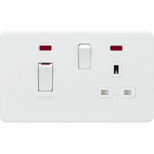 Knightsbridge Matt White 45A DP Switch & 13A Socket with Neons with insert