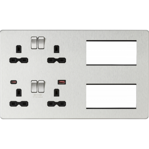 Knightsbridge Multi Combo Plate + Dual USB A+C 12V DC 1.5A (Max. 18W) Brushed Chrome w/Black Insert