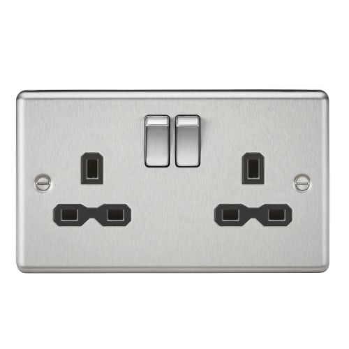 Knightsbridge Raised Edge Brushed Chrome 13A 2G DP Switched Socket with Twin Earths with Insert