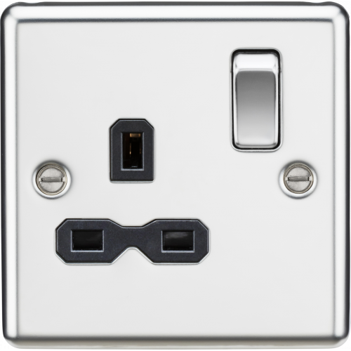 Knightsbridge Raised Edge Polished Chrome 13A 1G DP Switched Socket Black Insert