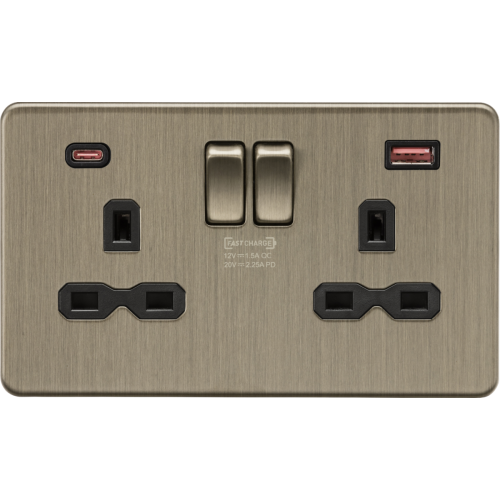 Knightsbridge Screwless Antique Brass 13A 2G DP Switched Socket with Dual USB A+C 20V DC 2.25A (Max. 45W)
