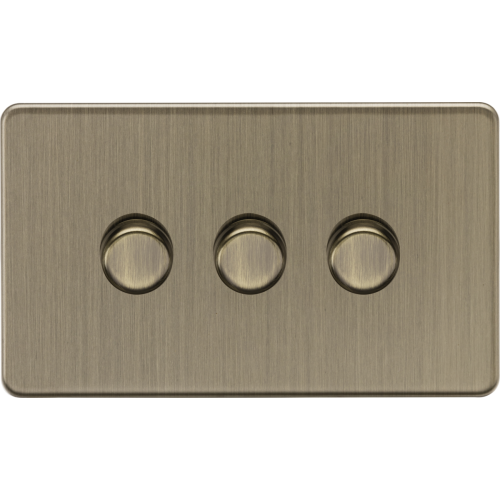 Knightsbridge Screwless Antique Brass 3G 2-way 10-200W (5-150W LED) Intelligent dimmer