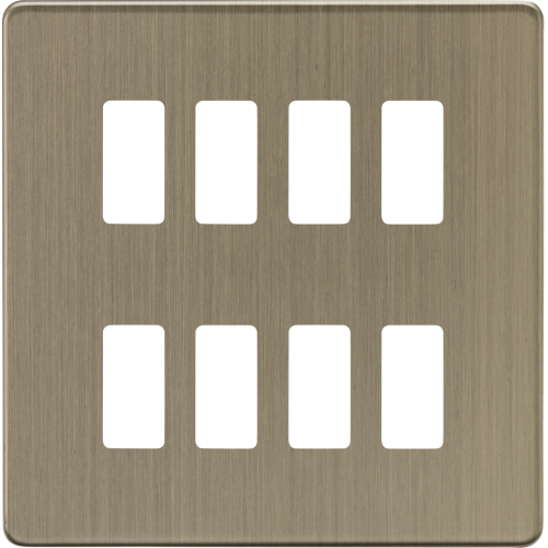 Knightsbridge Screwless Antique Brass 8G Grid Faceplate