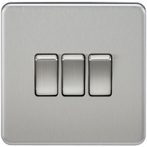 Knightsbridge Screwless Brushed Chrome 10AX 3G 2-way Switch