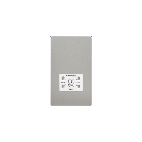 Knightsbridge Screwless Brushed Chrome 115V/230V Dual Voltage Shaver Socket White Insert