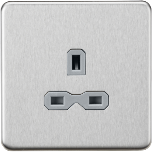 Knightsbridge Screwless Brushed Chrome 13A 1G Unswitched Socket Grey Insert