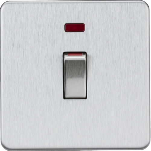 Knightsbridge Screwless Brushed Chrome 45A DP Switch with Neon (1G size)