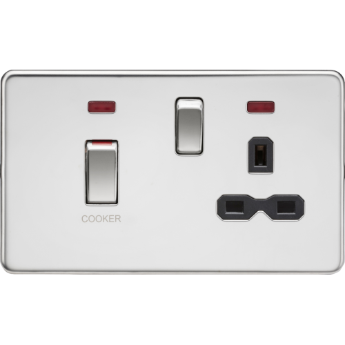 Knightsbridge Screwless Polished Chrome 45A DP Switch & 13A Socket with Neons Black Insert