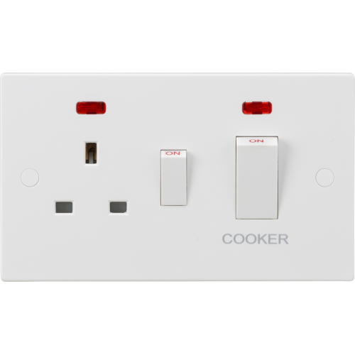 Knightsbridge White 45A DP Switch & 13A Socket with Neons Rockers