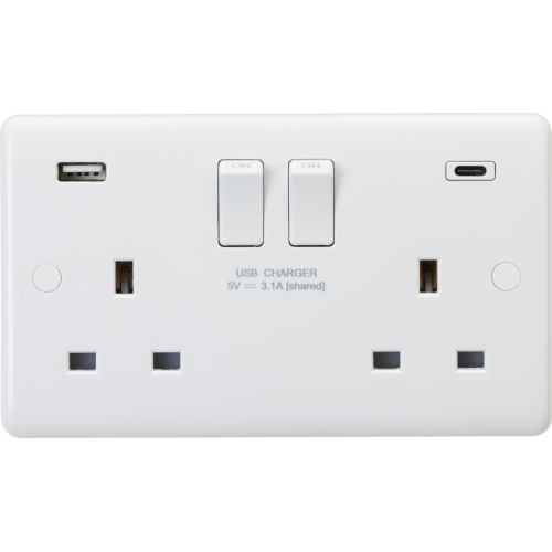 Knightsbridge White Curved Edge 13A 2G DP Switched Socket with Dual USB A+C [5V DC 3.1A shared] Max. 15.5W