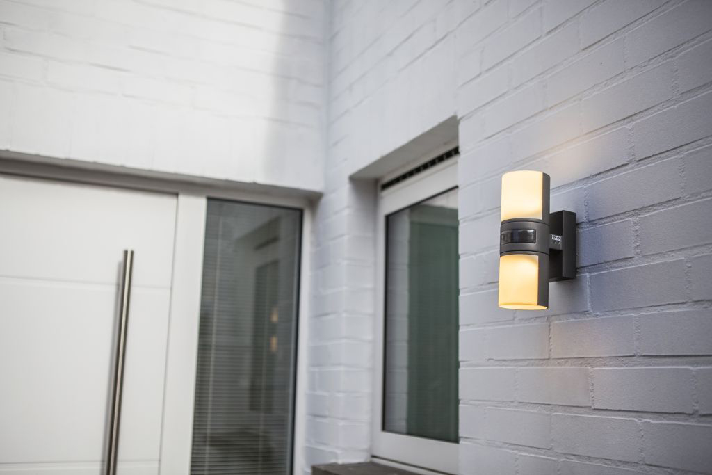 Lutec Cyra PIR IP54 Integrated LED 16.5W 3000K Wall Light With Adjustable Heads Dark Grey