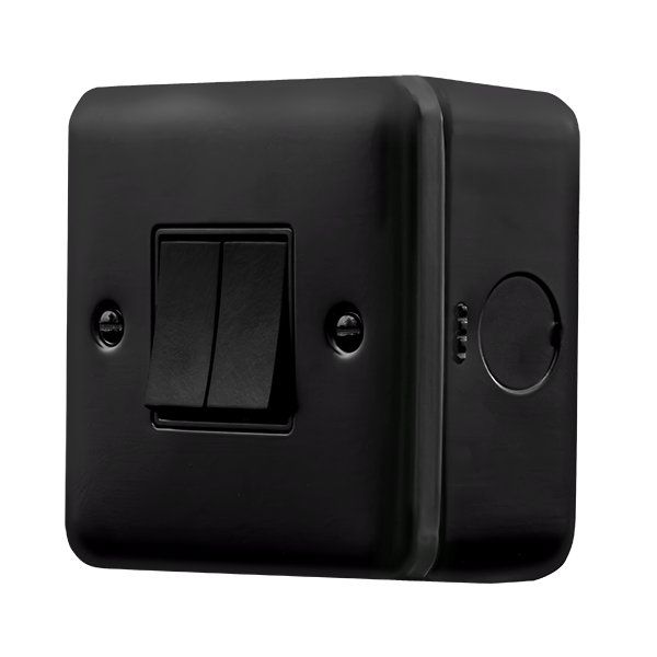 Click Metal Clad Pro 10Ax 2 Gang 2 Way Switch Black