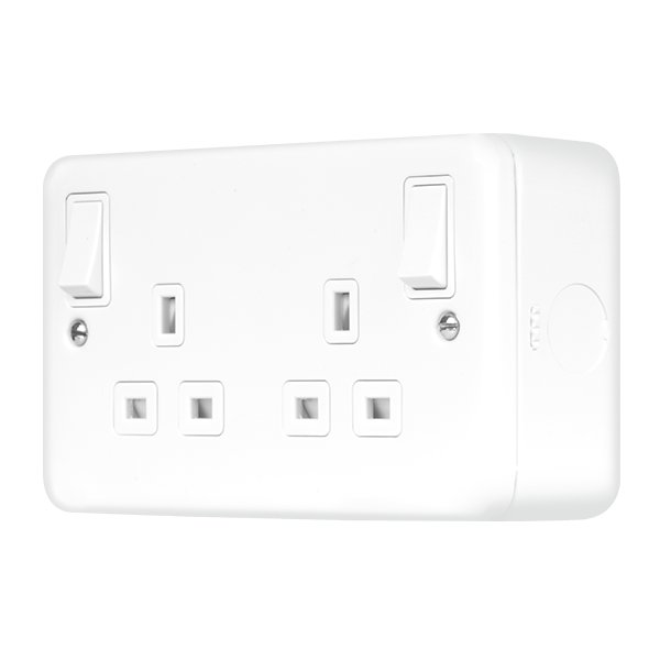 Click Metal Clad Pro 13A 2 Gang Double Pole Safety Shutter Outboard Switched Socket Outlet Polar White