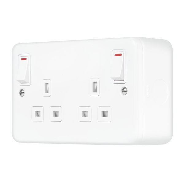 Click Metal Clad Pro 13A 2 Gang Double Pole Safety Shutter Outboard Switched Socket Outlet With Led Indication Polar White