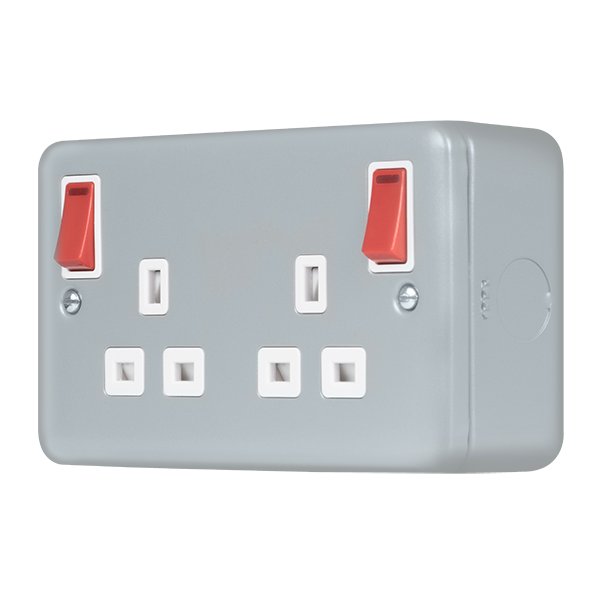 Click Metal Clad Pro 13A 2 Gang Double Pole Safety Shutter Outboard Switched Socket Outlet With Led Indication Red Rockers