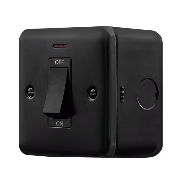Click Metal Clad Pro 50A 1 Gang Double Pole Plate Switch With White Rocker & Led Black