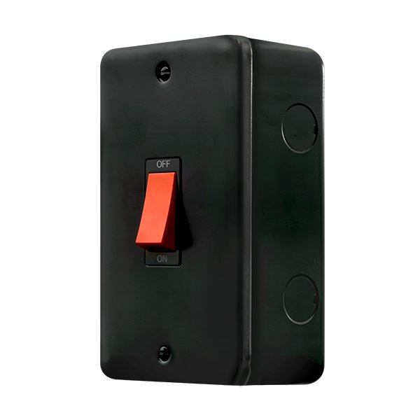 Click Metal Clad Pro 50A 2 Gang (Vertical) Double Pole Plate Switch With Red Rocker Black