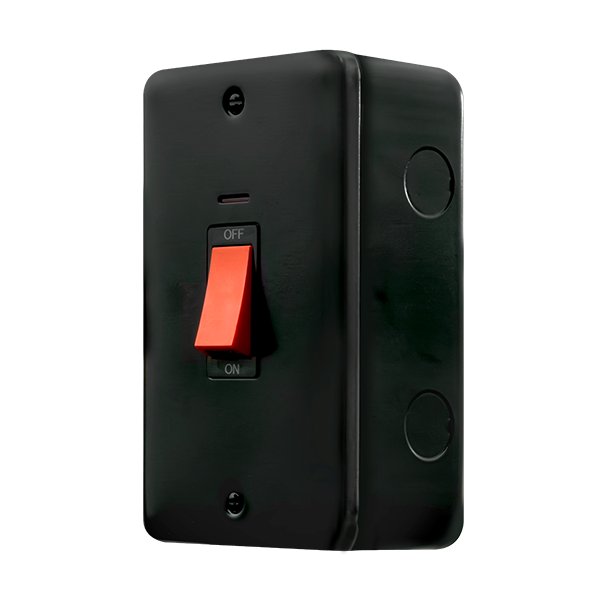 Click Metal Clad Pro 50A 2 Gang (Vertical) Double Pole Plate Switch With Red Rocker & Led Black