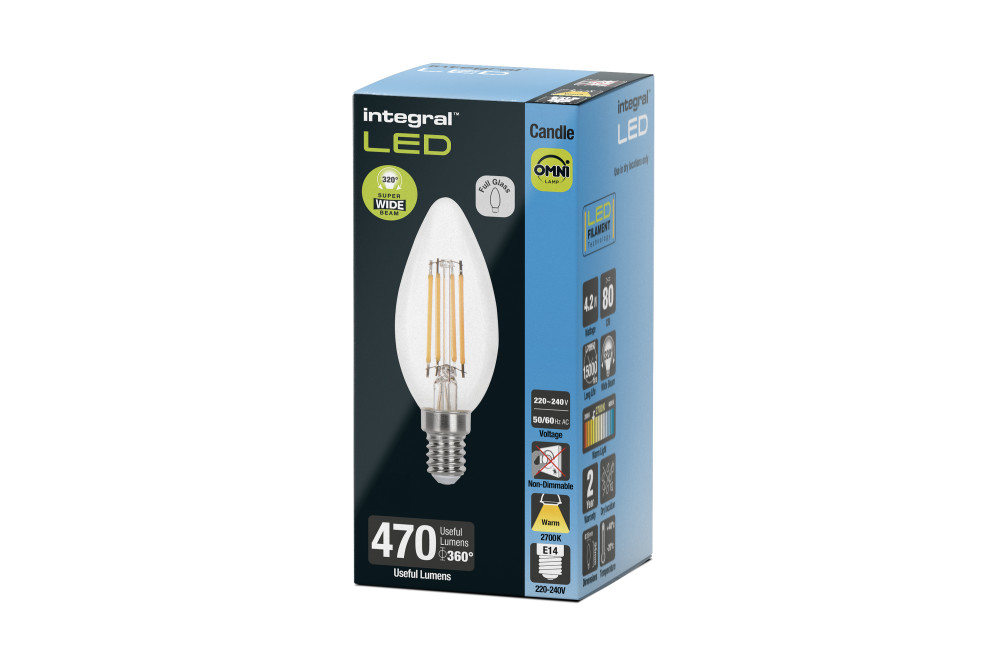 Integral Omni Filament Candle Bulb E14 470Lm 4.2W 2700K Non-Dimm 320 Beam Clear
