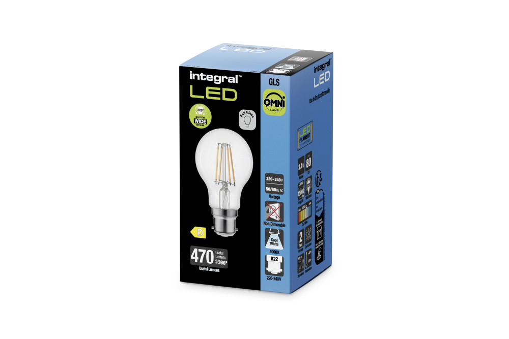 Integral Omni Filament Gls Bulb B22 470Lm 3.4W 4000K Non-Dimm 320 Beam Clear Full Glass
