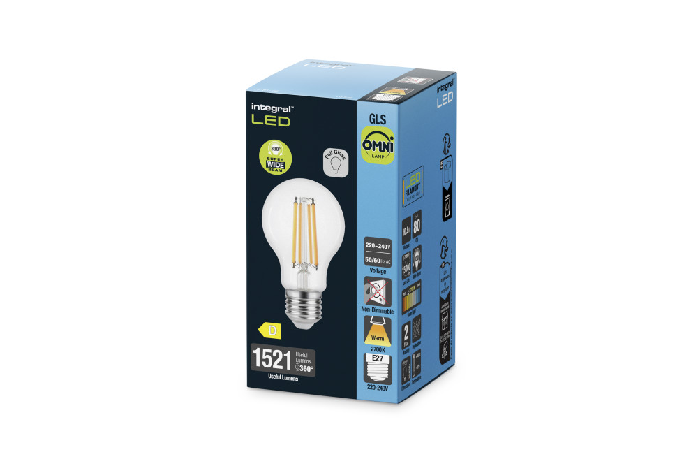Integral Filament Omni GLS Lamps utilise Filament LED technology and a full-glass body to create a decorative look and wide beam angle that looks fantastic in ceiling pendants and fittings where the lamp is exposed. These retrofit lamps are highly efficient and are an ideal replacement for traditional tungsten filament bulbs.