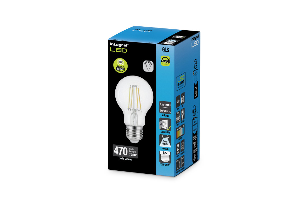 Integral Filament Omni GLS Lamps utilise Filament LED technology and a full-glass body to create a decorative look and wide beam angle that looks fantastic in ceiling pendants and fittings where the lamp is exposed. These retrofit lamps are highly efficient and are an ideal replacement for traditional tungsten filament bulbs.