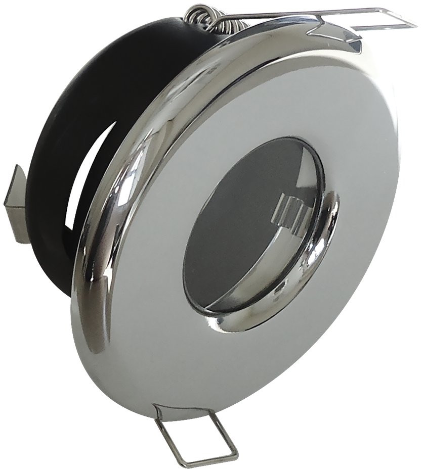 Mains rated GU10 Shower light available in chrome, nickel and white suitable for installations within zones 1 and 2. The traditional downlight offers simple maintenance compared to integrated LED offering easy lamp change suitable for hole cut outs of 70mm