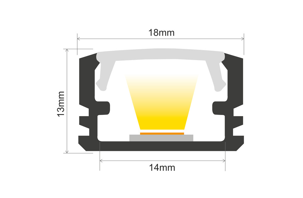 Integral Profile Surface Mount 1M Frosted Diffuser 18.6 X 12.5Mm Include 2 Endcaps And 2 Mounting Brackets