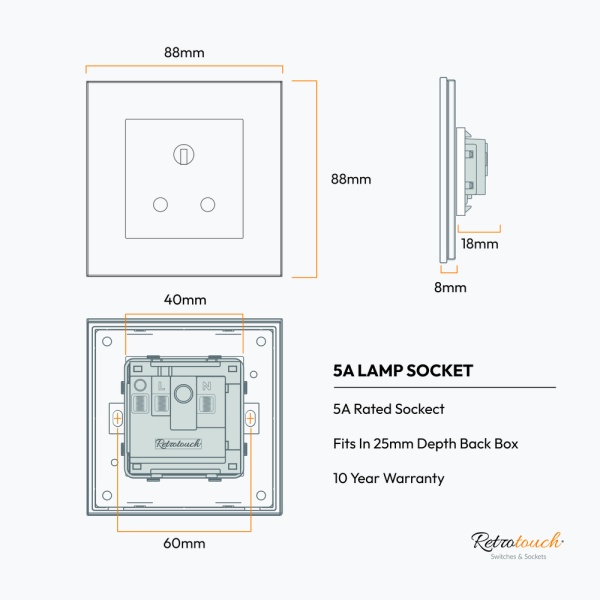 Retrotouch Aura 5A Lamp Socket – Brushed Nickel
