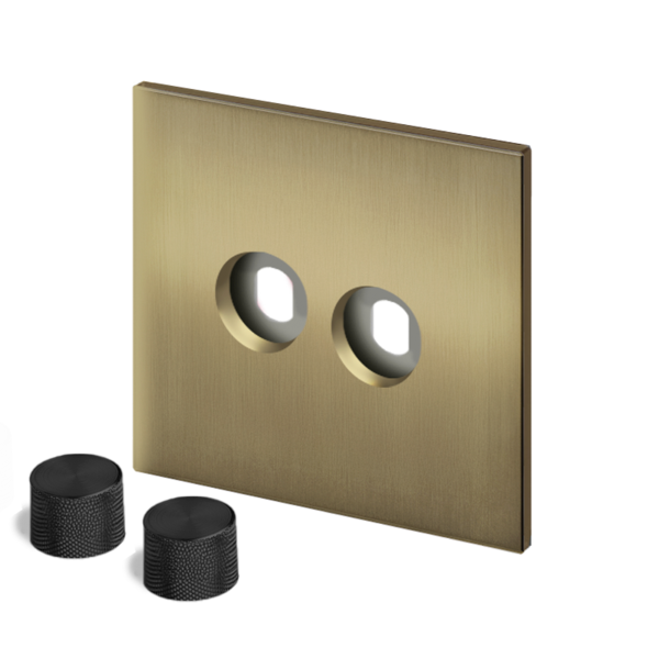 Retrotouch Aura Dimmer Plate 2G?with Black Knobs – Brushed Brass