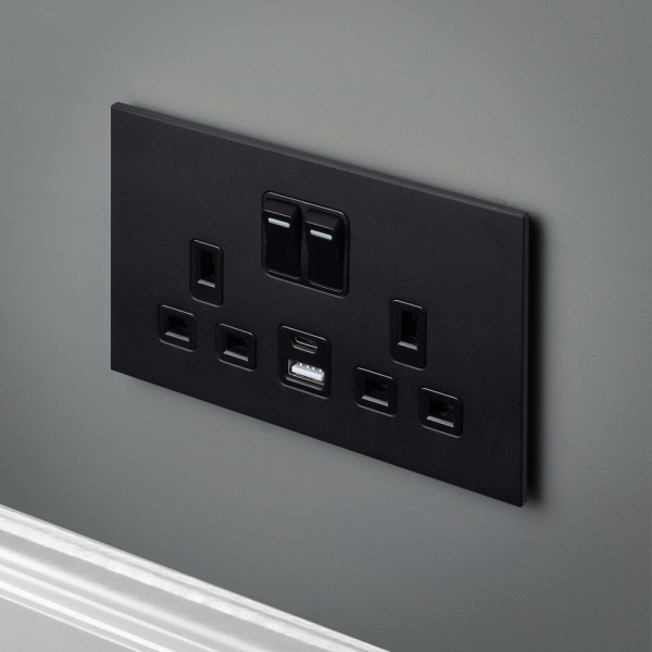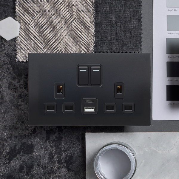 • 2 Gang 13A DP Switched Socket With 1 x USB-A &;amp 1 x USB-C