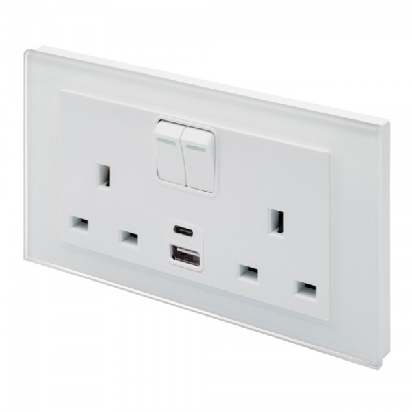 Retrotouch Crystal 3.1A USBC & 13A DP Double Plug Socket with Switch White PG