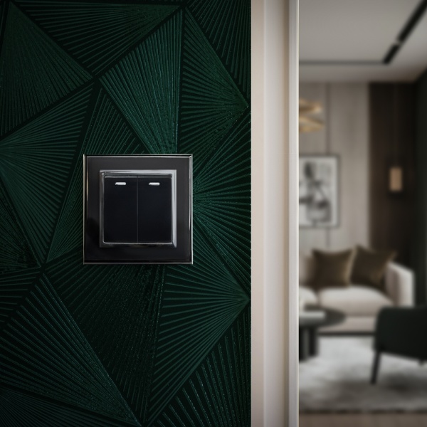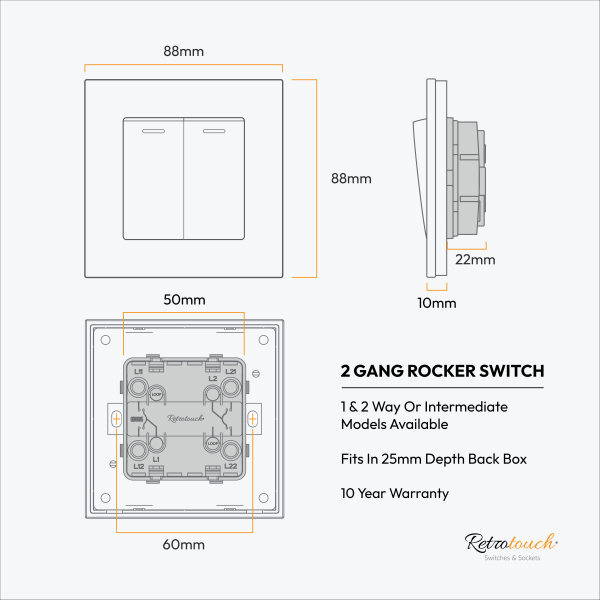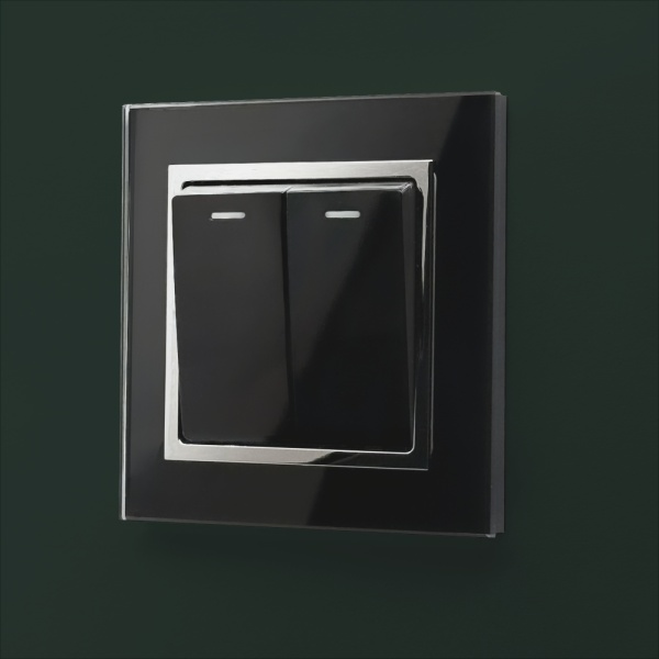 Retrotouch Crystal CT 2 Gang Rocker Light Switch Black