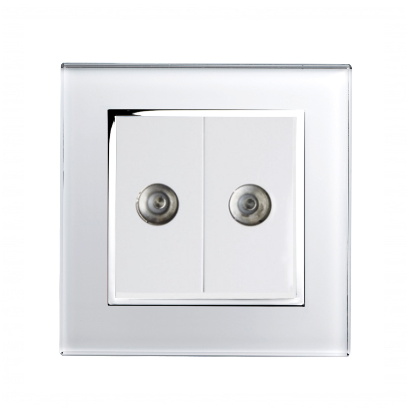 Give your TV inputs a makeover with our stylish glass dual TV sockets. A perfect product for those looking for a modern, top of the range electrical solution. Our units shine with that Crystal sheen and provide the perfect complement to the rest of our range.