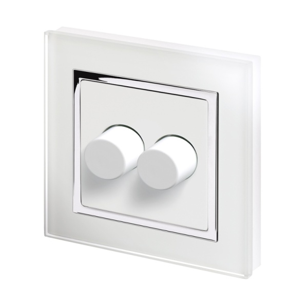 Set the mood in your home with our 2 Gang Rotary LED Dimmer Switches, designed for effortless control and timeless elegance. Part of Retrotouchs Crystal Range, these dimmer switches feature a premium glass design and a push on/off with smooth adjustable rotary dimming knob, allowing you to fine-tune your lighting to suit any mood or occasion and fit in a 25mm backbox. This 2-way rotary Dimmer can be paired with an on/off switch for control of a single lighting circuit from 2 locations. With a white glass exterior, these rotary dimmer switches blend seamlessly into your decor while adding a touch of sophistication. Whether you’re hosting a dinner party or enjoying a quiet evening, our dimmer switches provide the perfect balance of style and functionality.