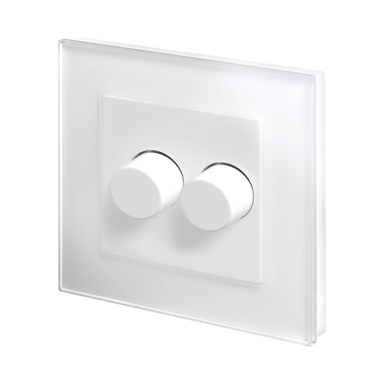 Set the mood in your home with our 2 Gang Rotary LED Dimmer Switches, designed for effortless control and timeless elegance. Part of Retrotouchs Crystal Range, these dimmer switches feature a premium glass design and a push on/off with smooth adjustable rotary dimming knob, allowing you to fine-tune your lighting to suit any mood or occasion and fit in a 25mm backbox. This 2-way rotary Dimmer can be paired with an on/off switch for control of a single lighting circuit from 2 locations. With a white glass exterior, these rotary dimmer switches blend seamlessly into your decor while adding a touch of sophistication. Whether you’re hosting a dinner party or enjoying a quiet evening, our dimmer switches provide the perfect balance of style and functionality.