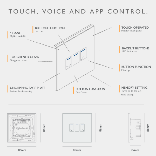 Retrotouch Crystal+ Touch Dimmer WIFI Switch 1G – White