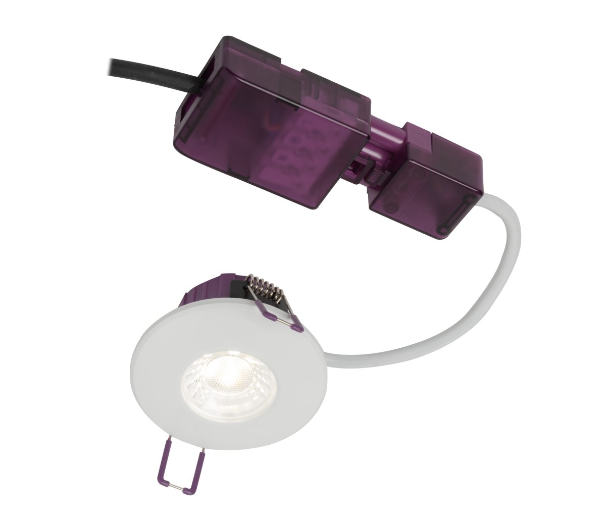 TRIUMPH SLIM is the ideal LED replacement for 50W halogen downlights suitable for commercial and domestic applicationsCCT is easily selectable with the switch found under the trim allowing selection between 3000/4000KDesigned and tested to retain the integrity of 30, 60 and 90 minute fire rated ceilings ? compliant with Building Regulations Parts B, C and E, tested for use with I-Joists & Metal Web Joists and safe to be covered in insulationA shallow profile of only 52mm depth Recessed depth 41mmComplete with 3-way double push-in connector block allowing loop in loop out and comes prewired with 0.2m of flexTwist and lock chrome, brushed chrome and matte black trims available as an accessory