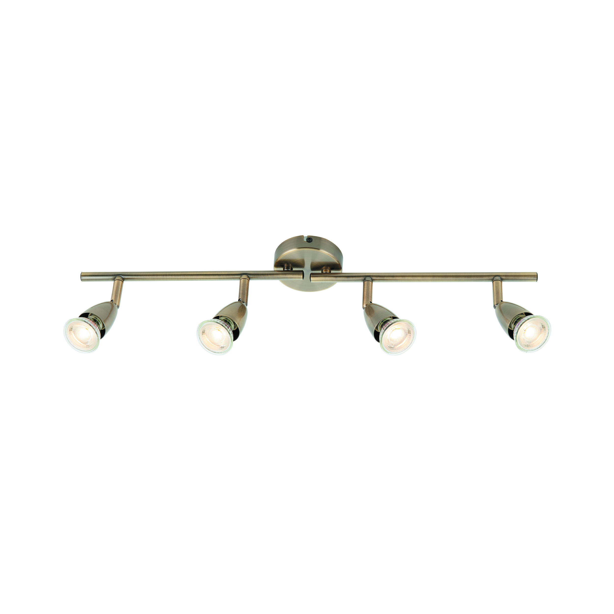 A simple four light spotlight bar from the Amalfi range finished in antique brass. Fully adjustable so light can be directed exactly where you need it. Suitable for commercial and domestic use. Matching items and different colour options available
