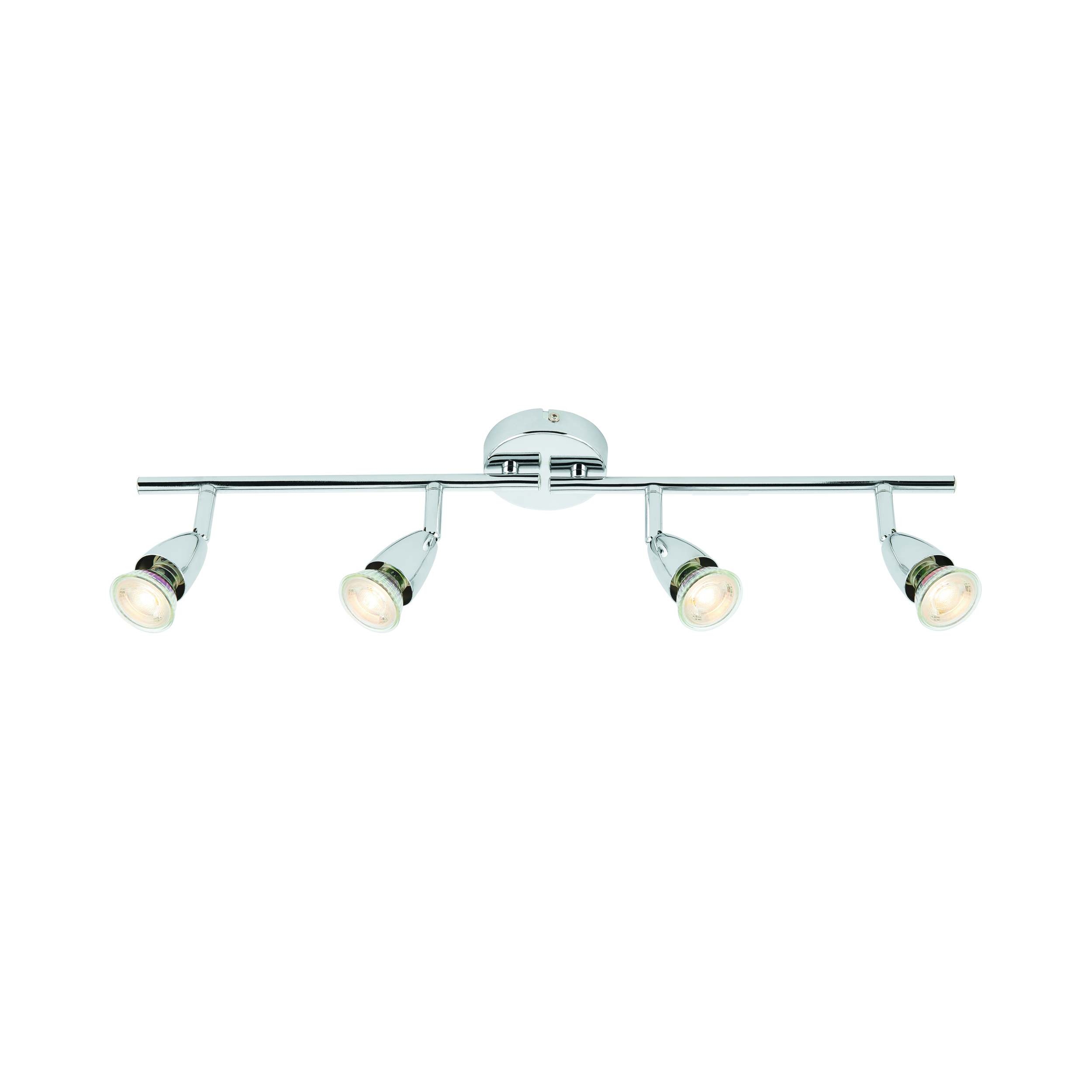 A simple four light spotlight bar from the Amalfi range finished in a chrome effect plate. Fully adjustable so light can be directed exactly where you need it. Suitable for commercial and domestic use. Matching items and different colour options available