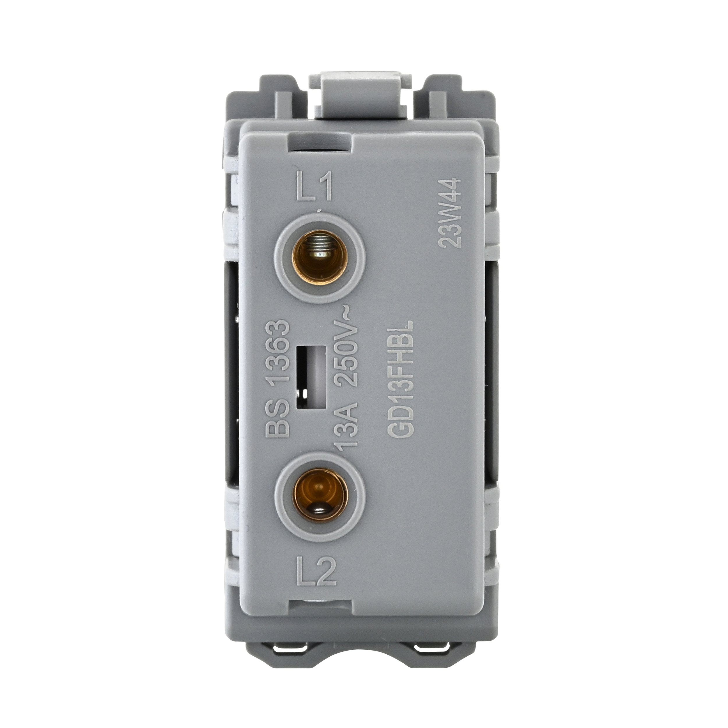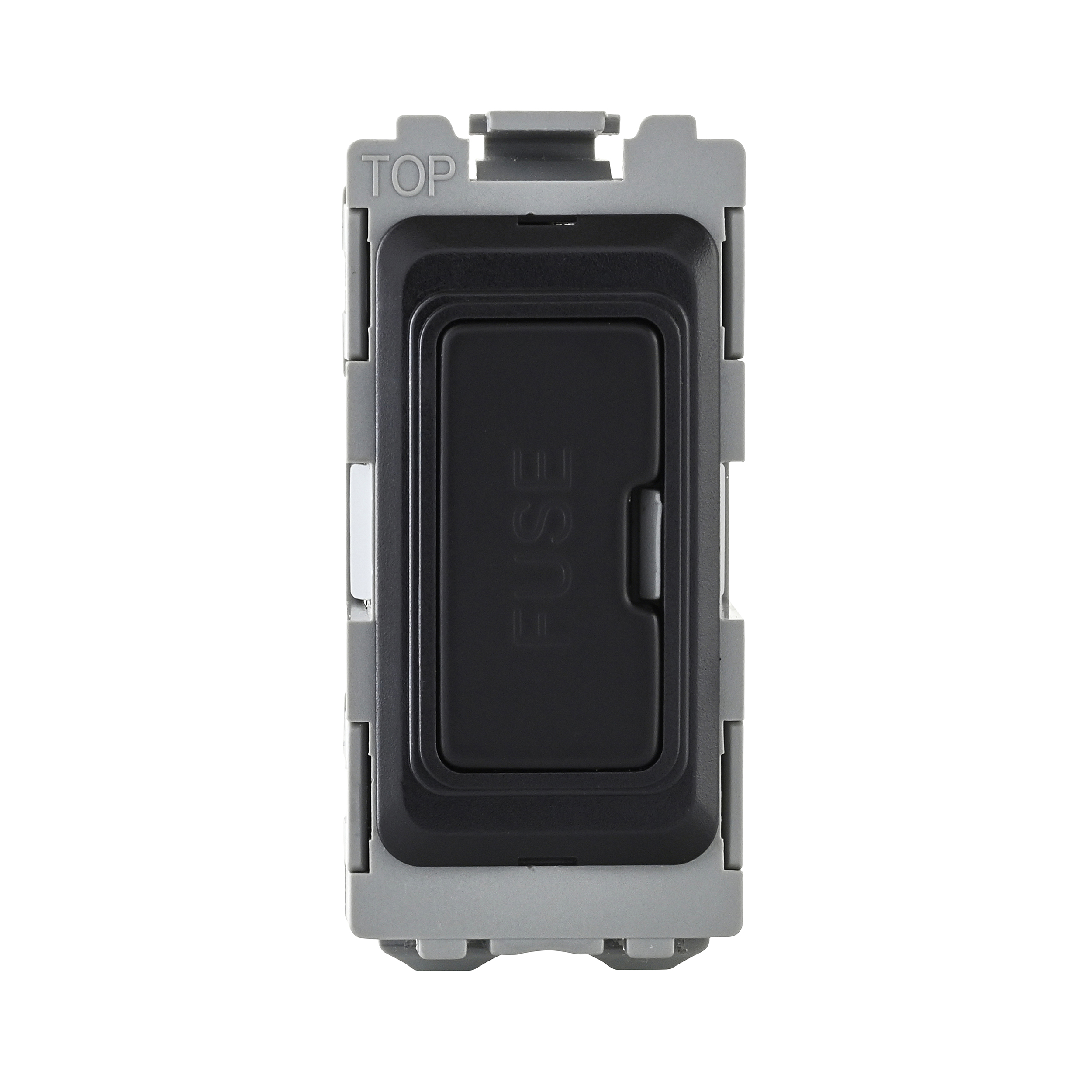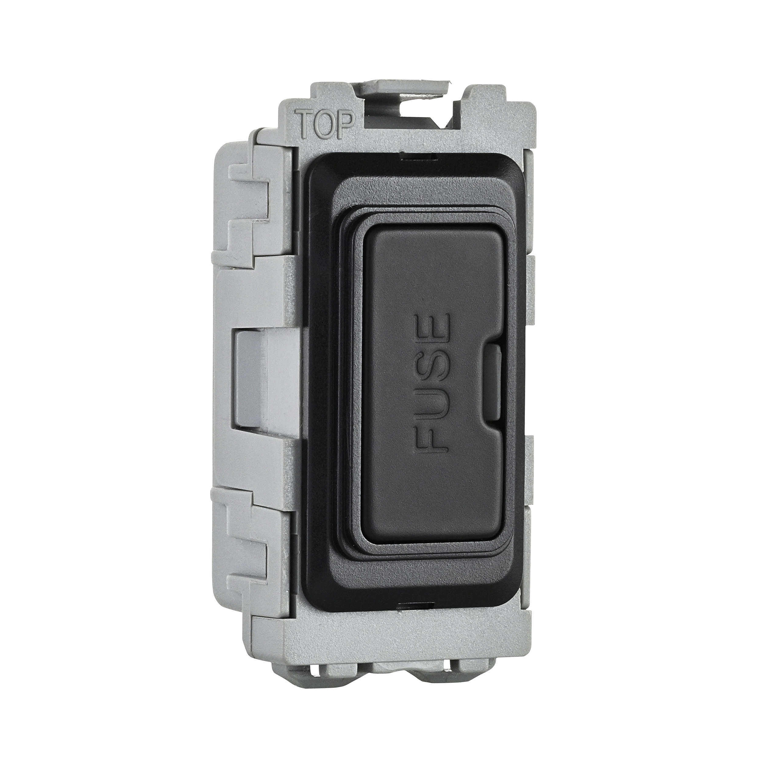 This module is rated to 13A. Embossed with “FUSE” on cover. Easily clips into any Saxby Electrical grid plates with the snap lock design. We recommend a minimum mounting box depth of 25mm. Other colour finishes available.