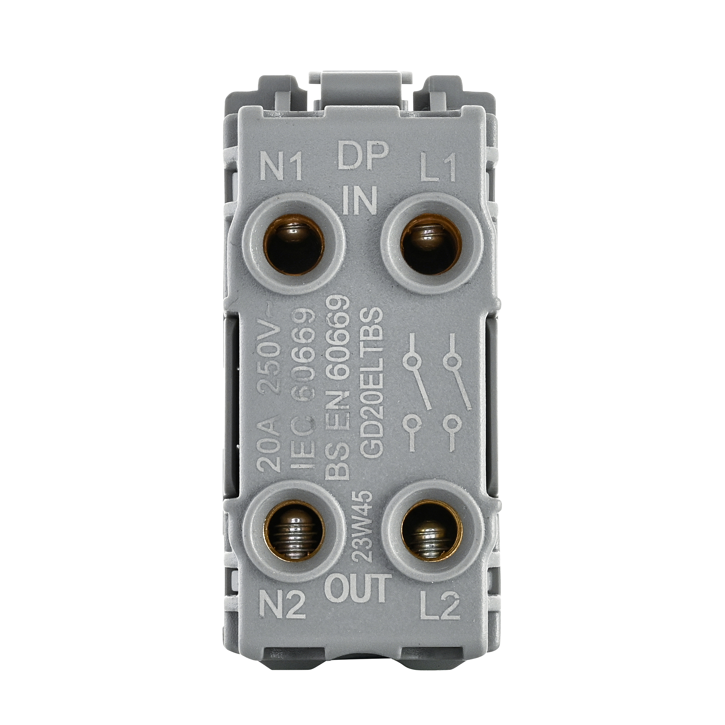 This module is rated to 20A. Easily clips into any Saxby Electrical grid plates. 2 way switching allows for a secondary switch position in the circuit. Double pole switching for the peace of mind of a safer installation. Please Note: Key is included.