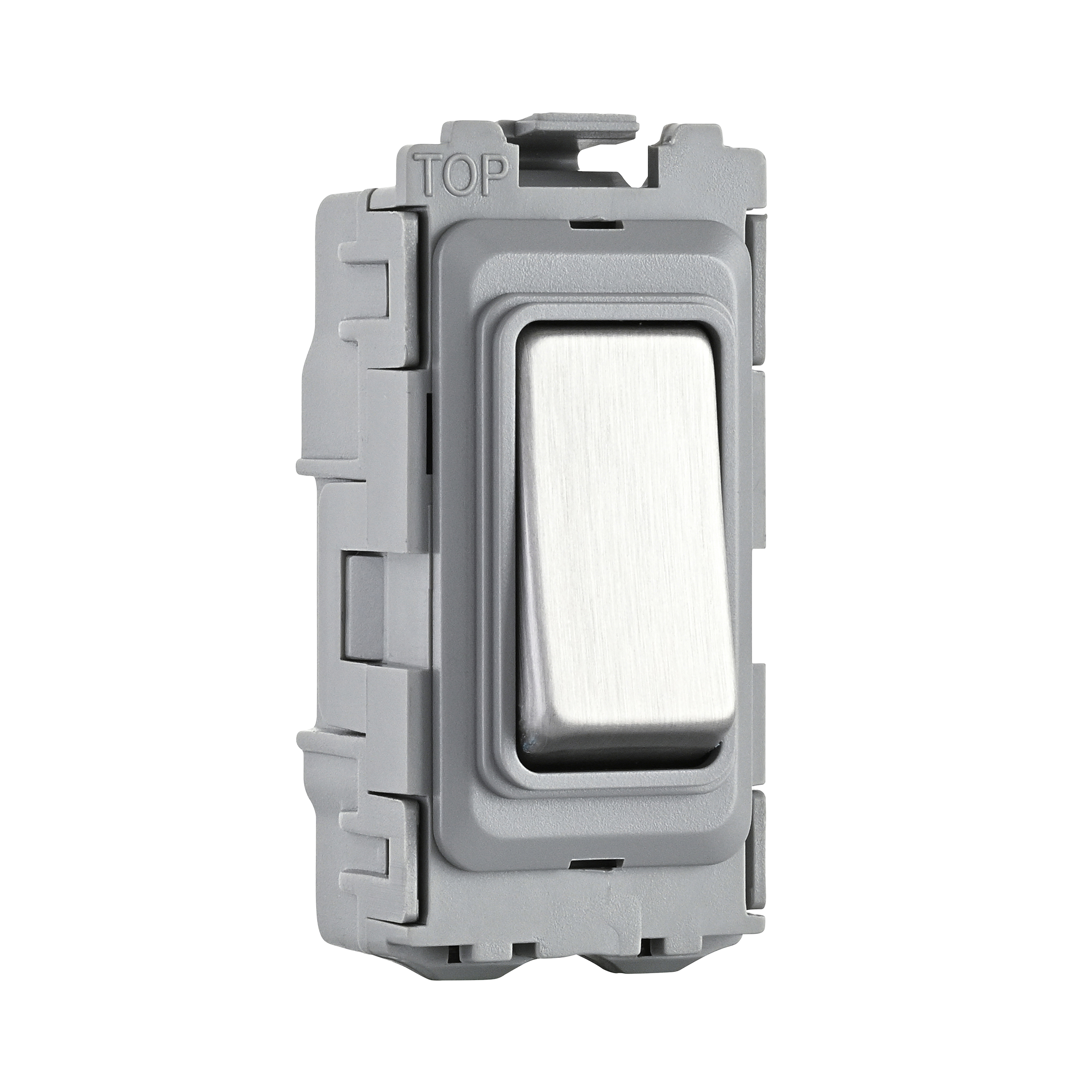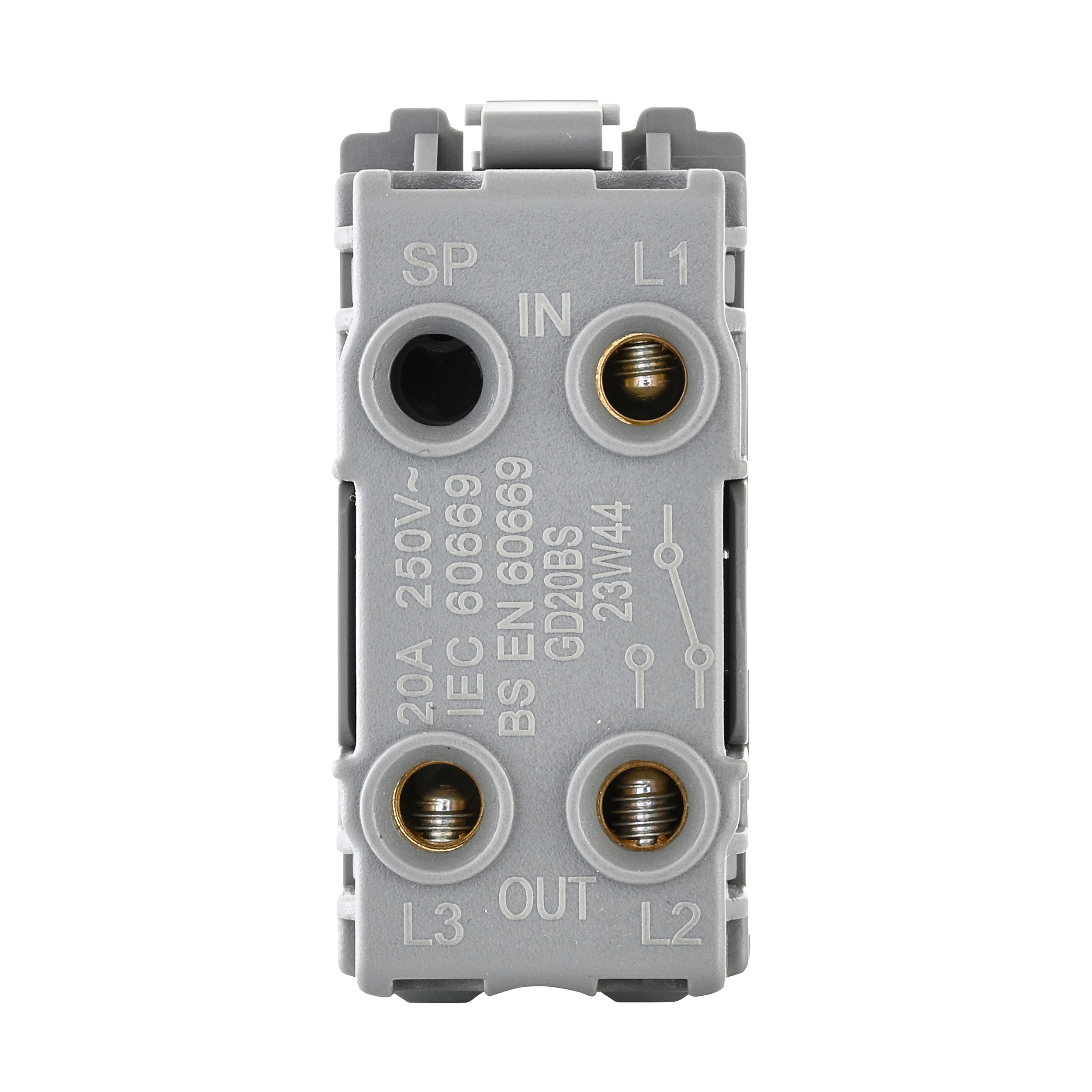 This module is rated to 20A. Easily clips into any Saxby Electrical grid plates. 2 way switching allows for a secondary switch position in the circuit. Other colour finishes available. We recommend a minimum mounting box depth of 25mm.