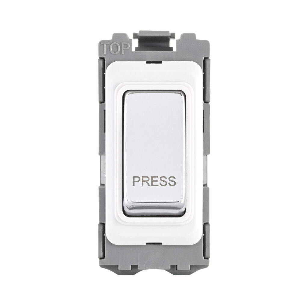 This module is rated to 20A. Easily clips into any Saxby Electrical grid plates. Double pole switching for the peace of mind of a safer installation. Other colour finishes available. We recommend a minimum mounting box depth of 25mm