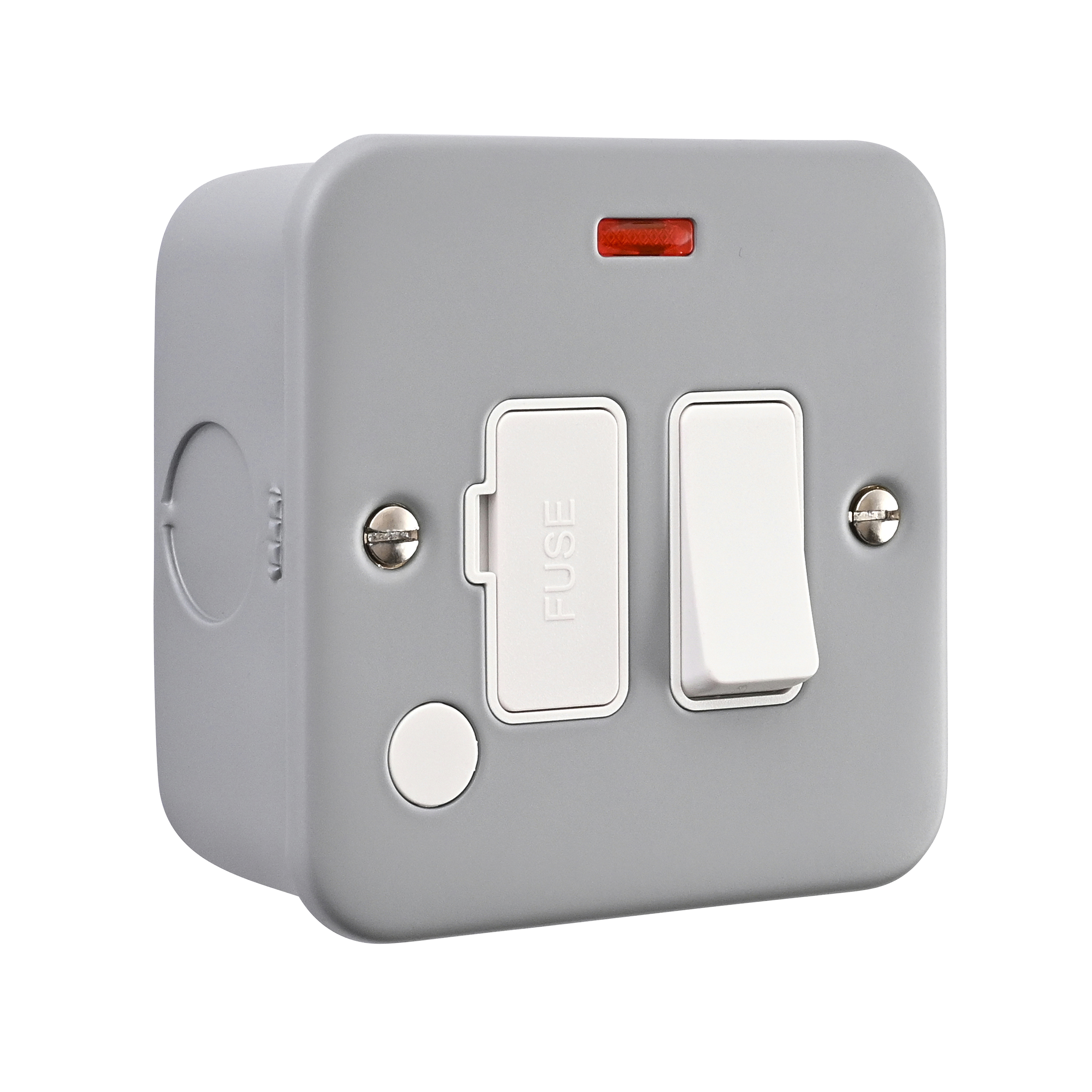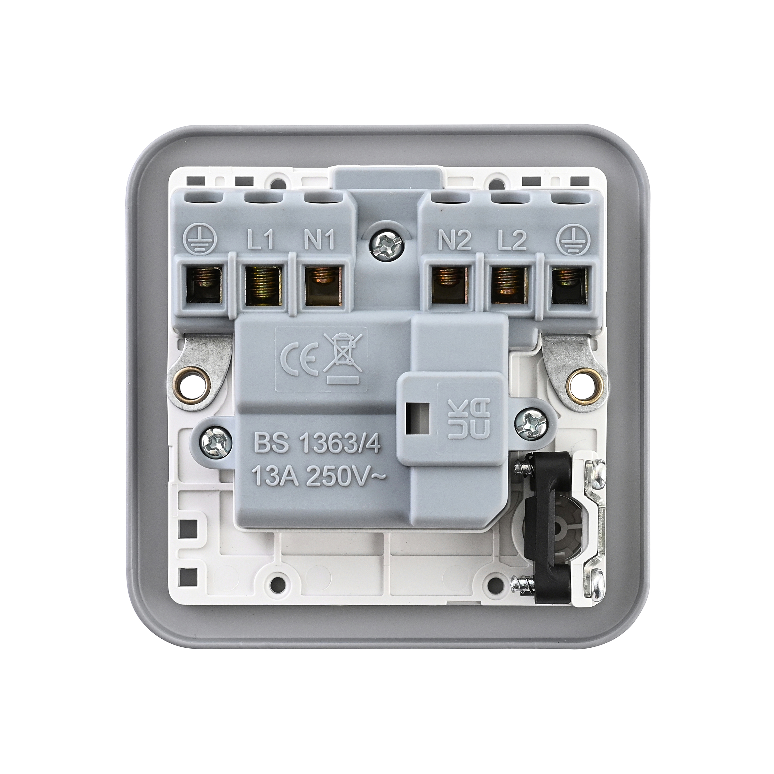 Our 13A rated fuse spur socket boasts captive screws which provide for quick, easy and hassle free installation. Supplied with fixing screws. Twin earth fitted as standard to allow a double earth facility for installations that require a high integrity protective connection . Flush neon power indicator on faceplate. Integrated flex outlet on face plate with cord grip on the rear with removable knockout.
