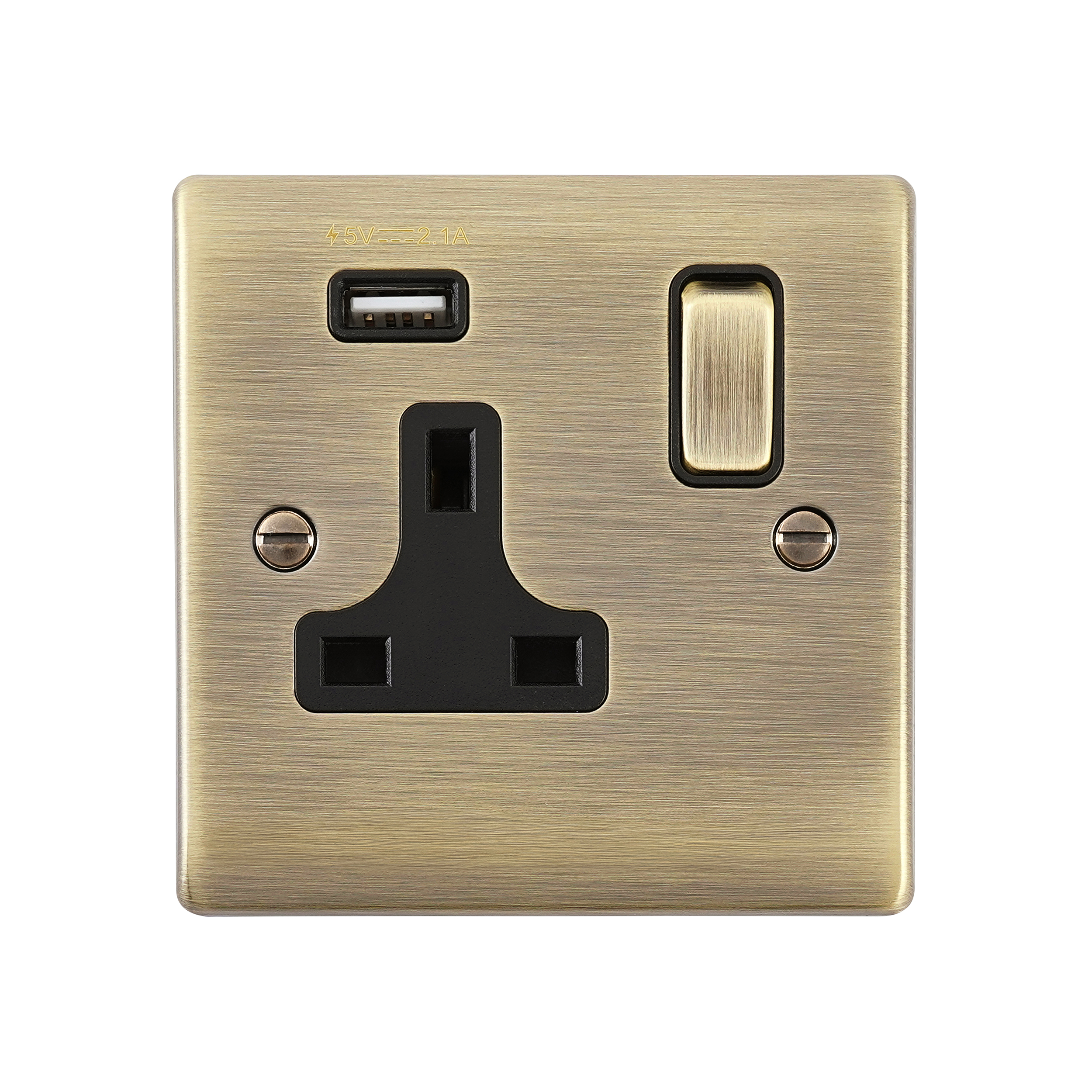 Saxby Electrical Raised Screwed 13A 1G DP Socket 2.1V USB Antique Brass
